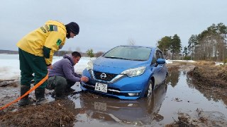 К счастью, рядом оказались лесничие. Они оперативно приехали и с помощью спецтехники вытащили автомобиль.